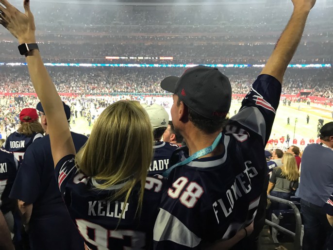 We’re still here. It’s a privilege, a once in a lifetime experience. And our team doesn’t HAVE to win. The pre-game energy, the city bustling with rivalry and camaraderie. Strangers highfiving in the streets, even the heckling from falcon fans was fun. So what if the Patriots lose the Super Bowl. (FML)